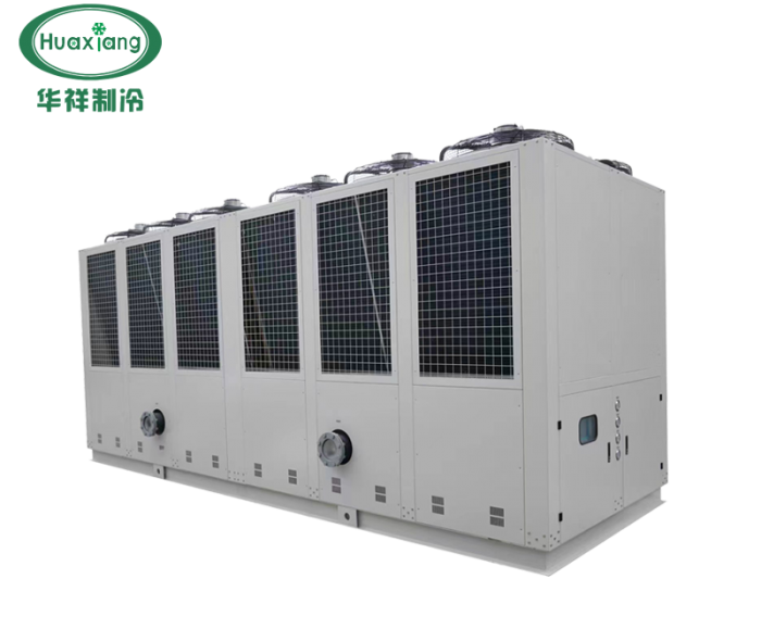 風(fēng)冷螺桿式冷水機(jī)主要以空氣作為冷卻源,特別是在資源匱乏的地區(qū),如中國的西北或東北,國外的不地因缺水的國家或地區(qū)特意設(shè)計(jì)的大型機(jī)組。因其關(guān)鍵部件-壓縮機(jī)采用螺桿式故名風(fēng)冷螺桿式冷水機(jī),機(jī)組由蒸發(fā)器出來的狀態(tài)為氣體的冷媒;經(jīng)壓縮機(jī)絕熱壓縮以后,變成高溫高壓狀態(tài)。被壓縮后的氣體冷媒,在冷凝器中,等壓冷卻冷凝,經(jīng)冷凝后變化成液態(tài)冷媒,再經(jīng)節(jié)流閥膨脹到低壓,變成氣液混合物。其中低溫低壓下的液態(tài)冷媒,在蒸發(fā)器中吸收被冷物質(zhì)的熱量,重新變成氣態(tài)冷媒。氣態(tài)冷媒經(jīng)管道重新進(jìn)入壓縮機(jī),開始新的循環(huán)。這就是冷凍循環(huán)的四個(gè)過程。也是螺桿式冷水機(jī)的主要工作原理。